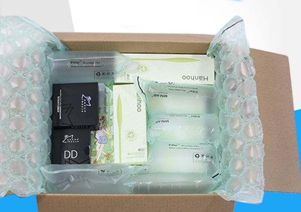 MINI AIR HDPE綠色氣泡枕(Filler)(HDPE Air Pillow)是由HDPE材料通過吹膜設備和制袋設備制成的氣囊狀薄膜產品。由99%空氣和1%PE膠膜組成,極大節約了包裝材料倉儲空間;可承受50~120kg的壓力,使用時經過充氣設備充氣熱封后,用于包裝容器內產品的填充、減震、穩固產品,可有效吸收貨物運輸過程中因晃動、震動、碰撞、拋丟所帶來的沖擊力,起到緩沖保護的作用,確保產品運輸安全。通過全球第三方SGS物理性能測試,符合RoHS材料安全標準,深受電子儀表、陶瓷工藝品、家用電器、五金工具產品和精密儀器等行業的青睞。