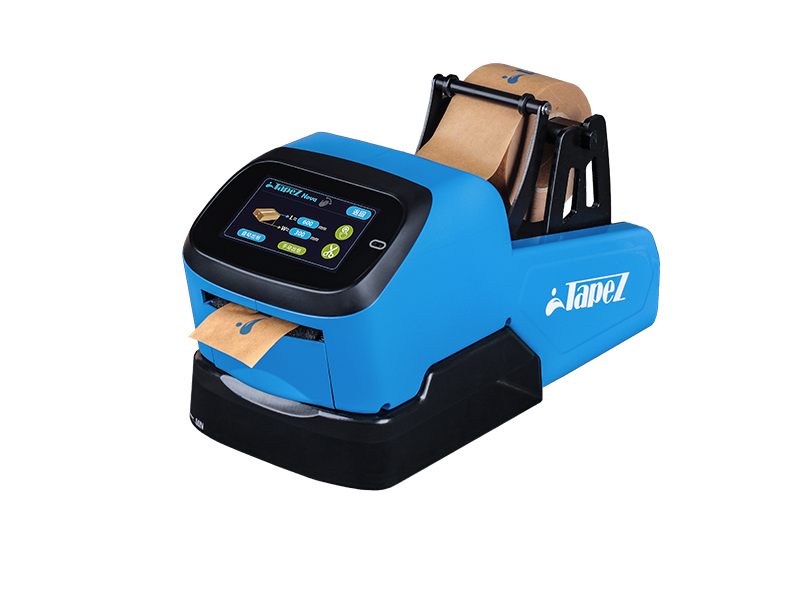 TapeZ 全自動濕水膠紙機是一款多功能全自動牛皮紙膠帶涂水切割自動出紙設備,外觀精美、可自主設定濕水牛皮紙膠帶長度和工作模式,智能高效,具備全機故障檢查與報警功能,60米每分鐘的出紙速度能夠適配用戶各種形式的包裝封箱需求。一字封箱、十字封箱、工字封箱等多種工作模式,滿足各種封箱需求。